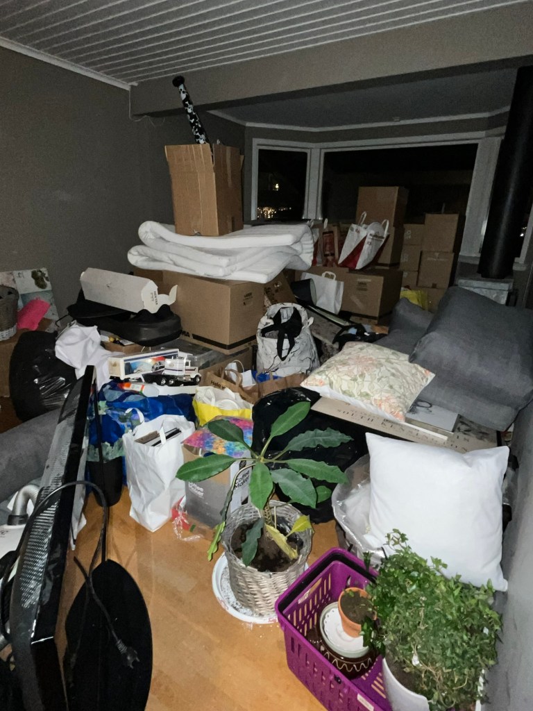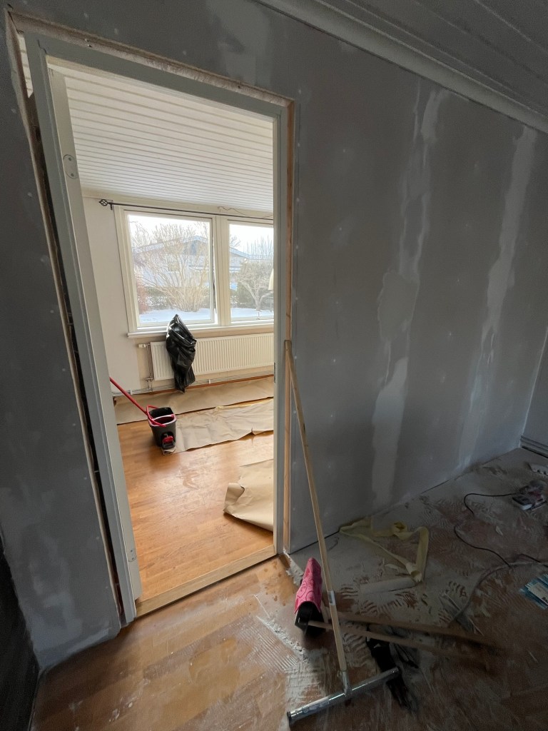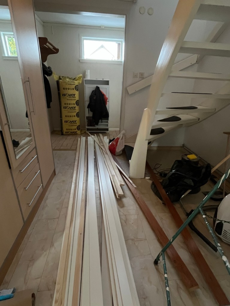 Igår städade jag och plockade jag med. Och nu börjar det bli mer ordning. Hall nere, uppe och trappen är ju kvar att renovera så det är som det är. Men vi vet iallafall nu var vi har alla saker och slipper gå omkring och leta i kartonger.