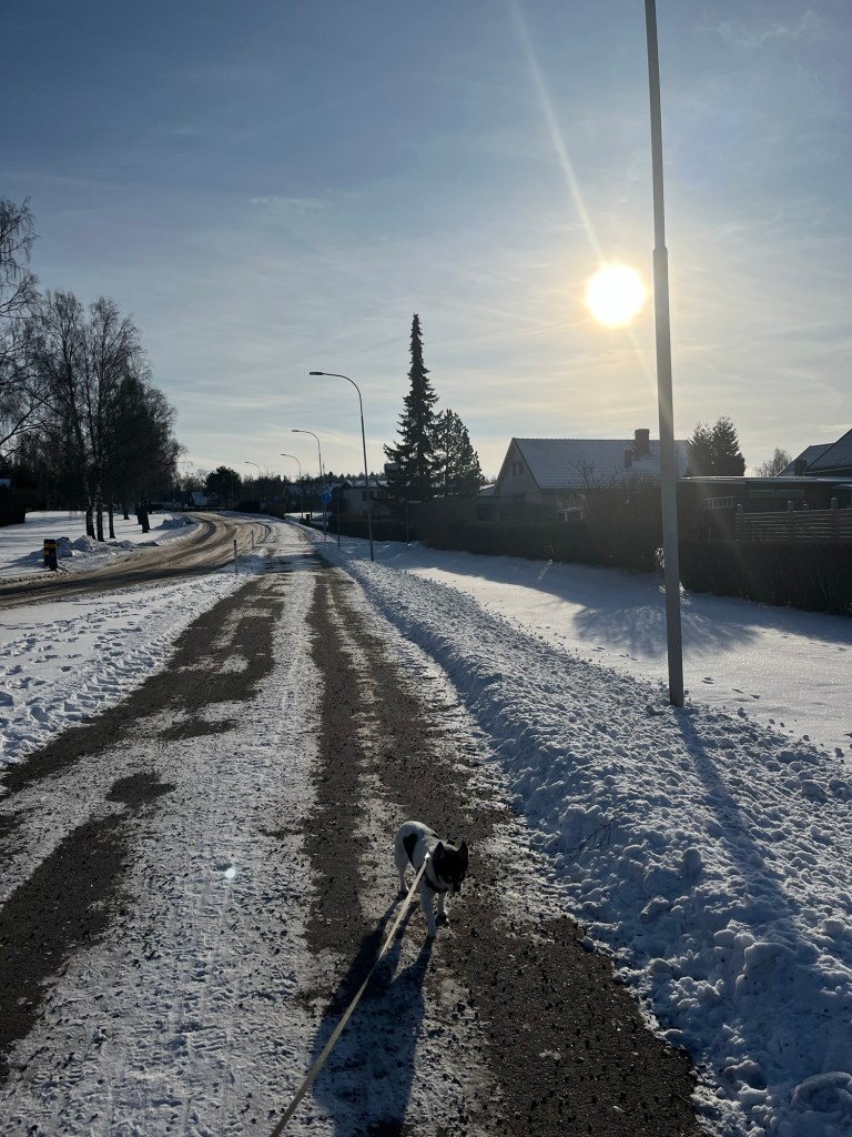 Hunden vill knappt gå ut när det är så kallt men igår med sol och 1 minus gick det bra. Och solen gör ju både folk och fä glada ☀️