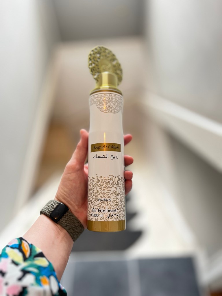 Och så den här lukta gott-sprayen. Från Dollarstore. Både väggar och tak har fått en dutt. Luktar så gott!