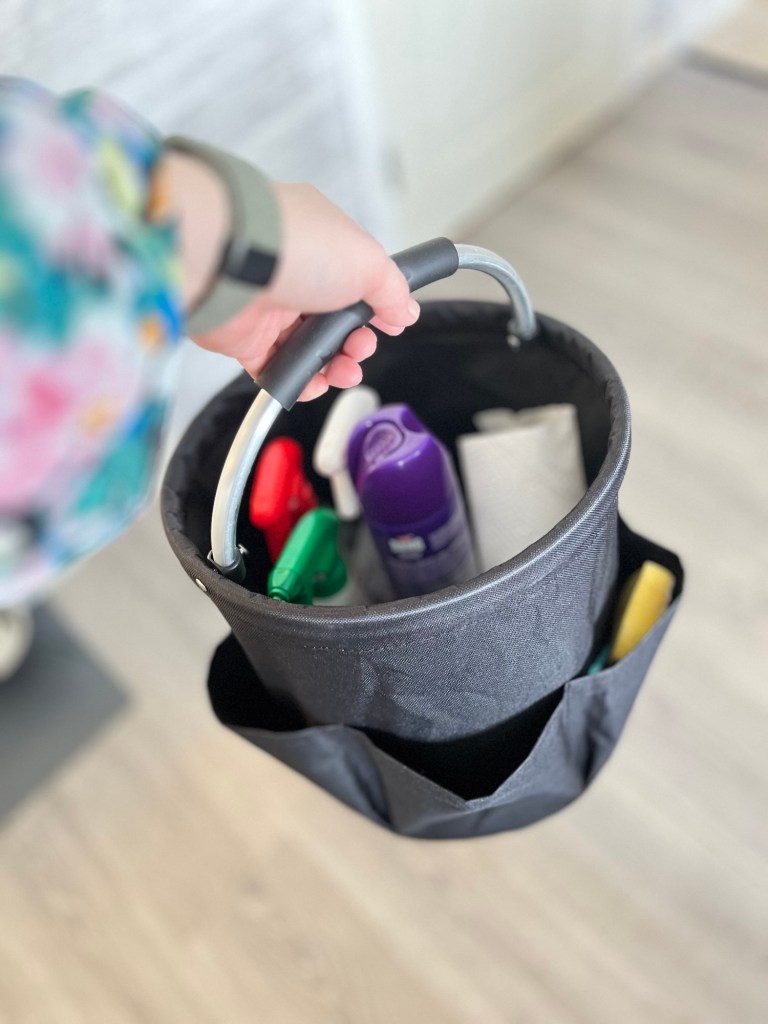 Ett annat tips som jag köpte för ett tag sedan är en sådan här städkorg. Bra när man städar flera rum eller när det är flera våningar.