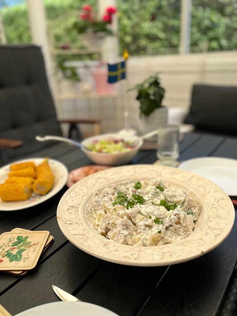 Gjorde en god potatissallad som var rätt nyttig också. Spelade ju mindre roll när allt annat var onyttigt men ändå 😅