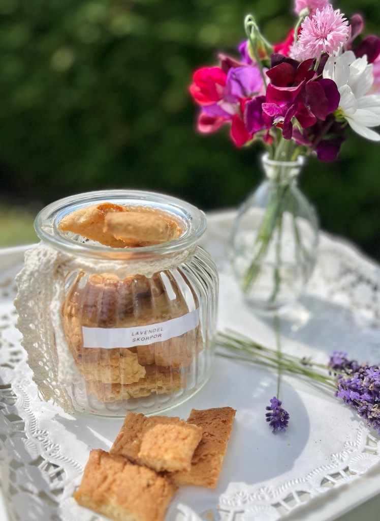 I morse bakade jag lavendelskorpor. De blev riktigt goda och bara namnet känns somrigt . Jag ska plocka in mer sen och torka sen och lägga i små påsar i garderoben.