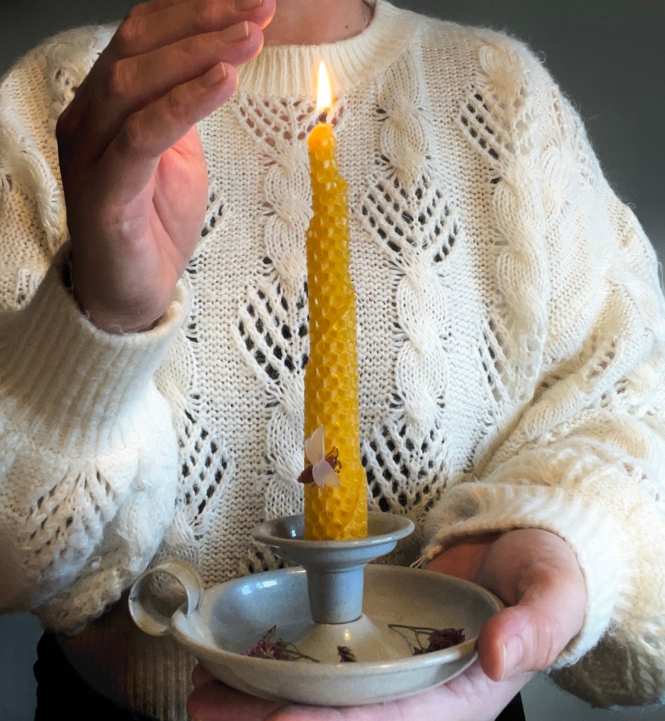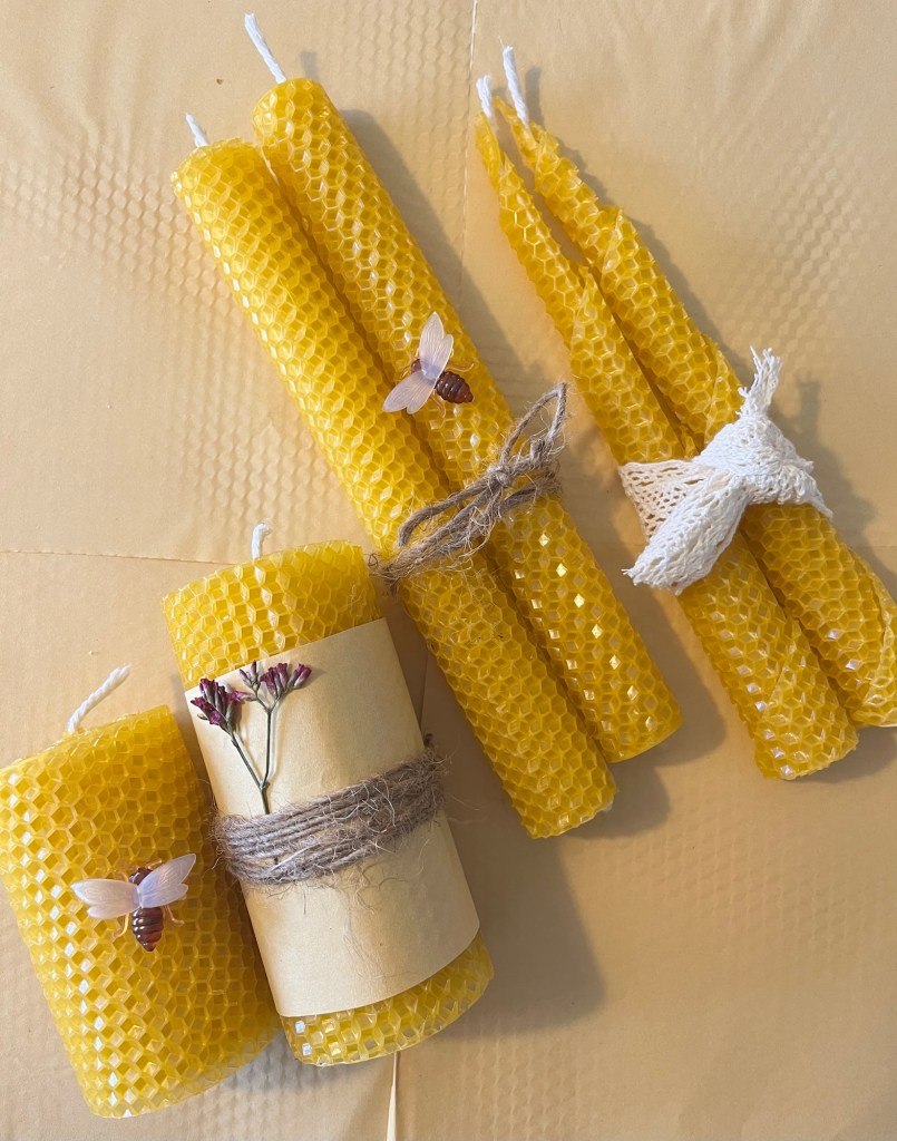 Sedan hade jag köpt bivax för att göra egna ljus. Jag minns de där snurrade ljusen från 90-talet, vi tände de aldrig utan de stod där som prydnad. Jag tänker att saker som blir bra kan jag sedan ha som gå-bort present tillsammans med en blomma.