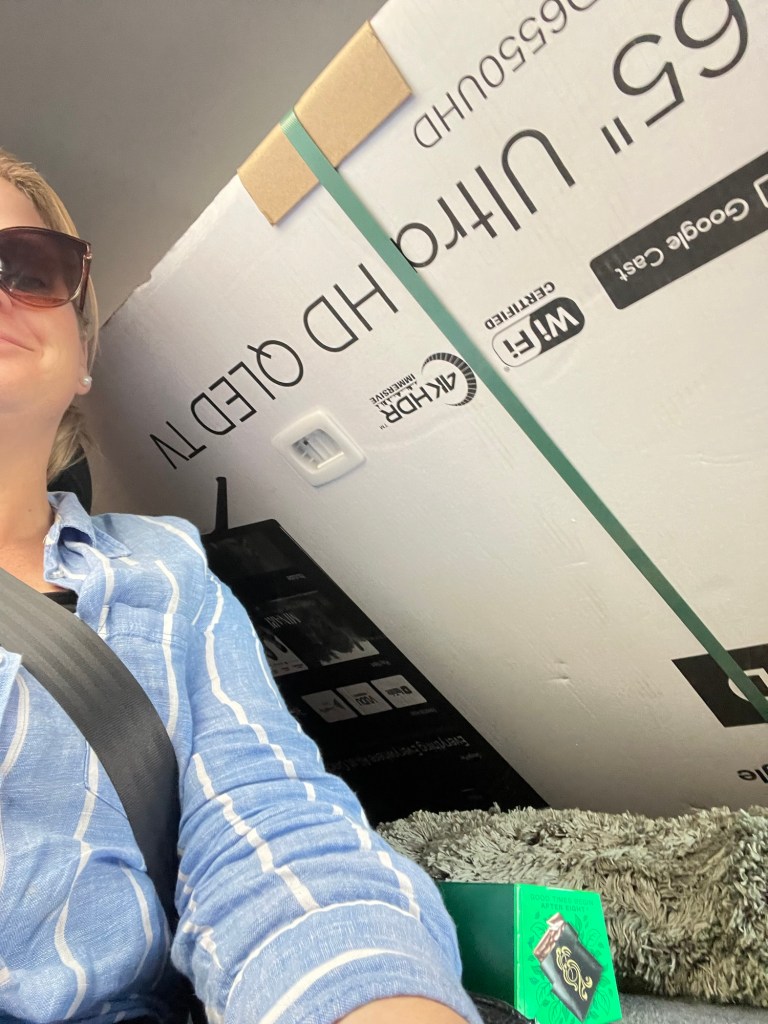 Vi åkte sedan omkring i stan och hjälpte till med inhandling av diverse saker som behövdes då allt inte kunde komma med hem från utlandet. Bilen blev full och mamman fick sitta snett 😅