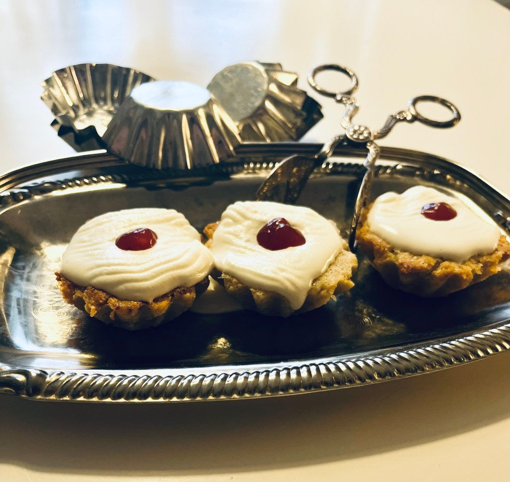 Jag har bakat mandelmusslor. Jag gjorde det även förra julen och nu är det en tradition. Med sylt och grädde på är de riktigt goda. Fast mest gör jag de för att de är så roliga att baka.