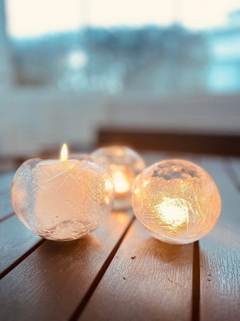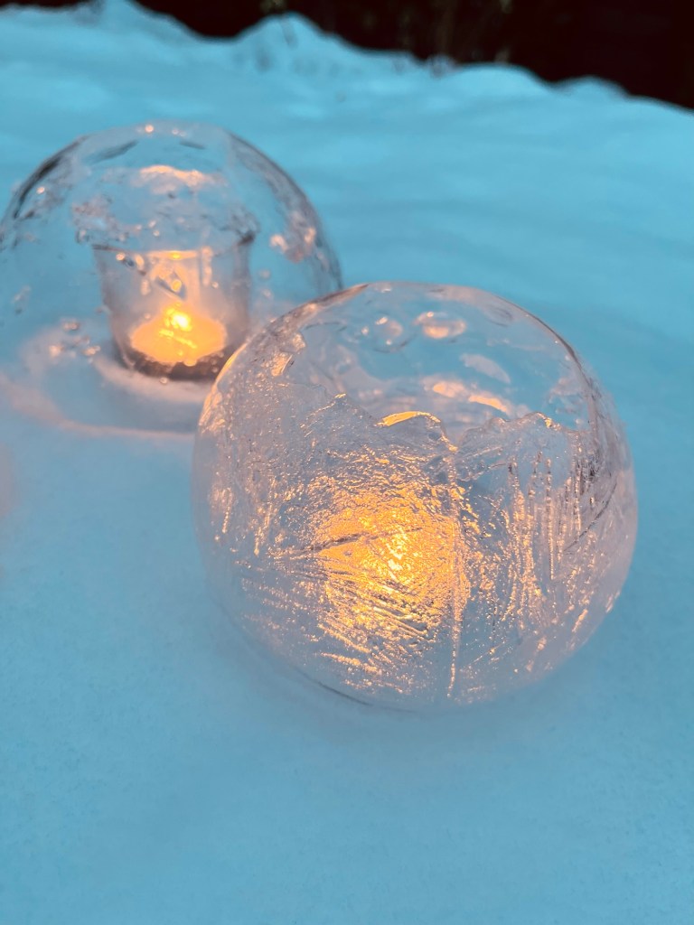 Ballonger fylls med vatten och lite luft och ställs ut i minusgrader.
