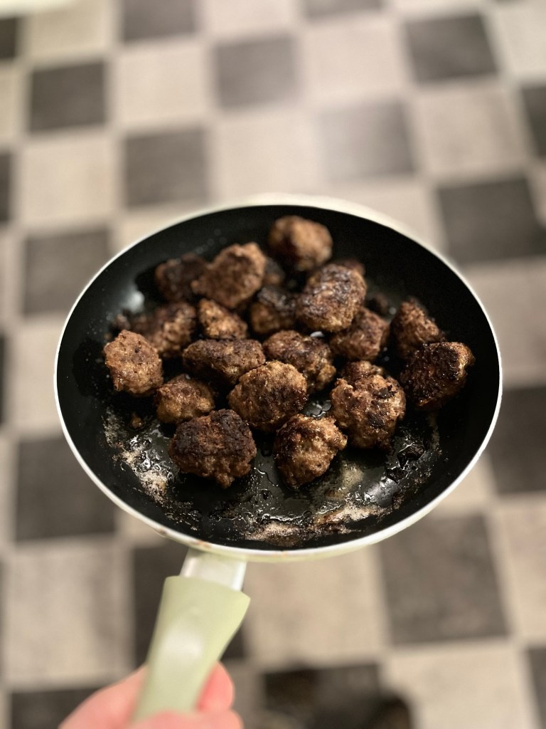 Köttbullar blev det också. Men var för trött för att rulla så tog den här lat-manicken.