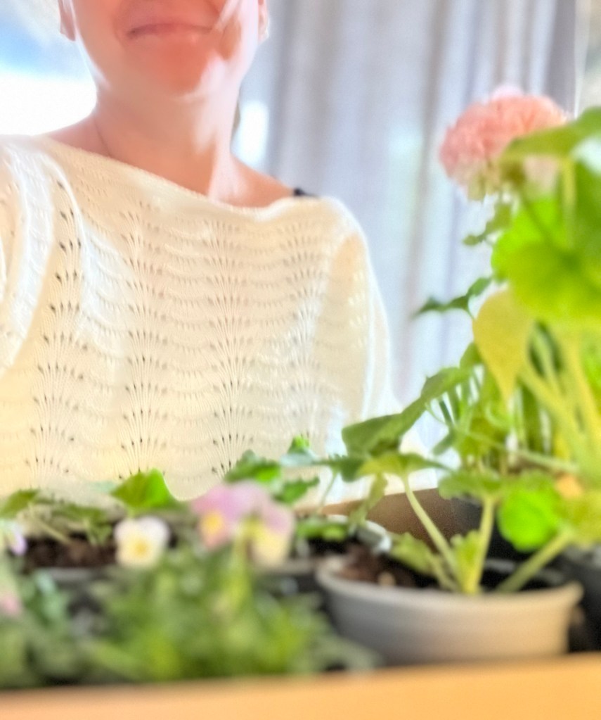 Vårblommor och våryra I går åkte vi förbi Habblarp trädgårdar. Men jag tycker penséerna var dyra. Jag köpte iallafall några så får jag komplettera senare. Mårbacka-stickningar blev det tre stycken. Samlar på lerkrukor som de ska få bo i ute i uterummet. Blir fint det.