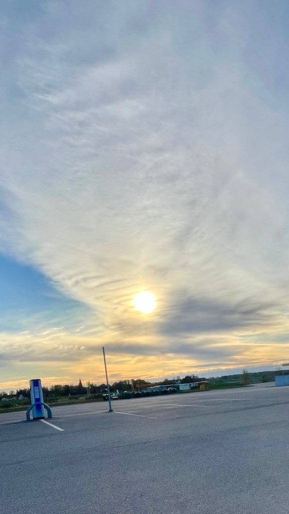 Igår körde mannen allt skräp till tippen, blir ju en hel del när man renoverar. Skönt att hålla efter det lite. Själv var jag och handlade och hängde på låset i den här fina soluppgången.