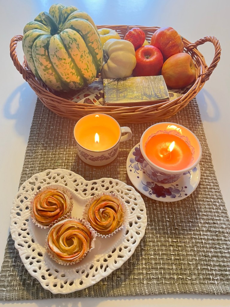 På eftermiddagen bakade jag några chokladkakor. Tog fram höstservisen. Byter alltid koppar och muggar efter säsong.